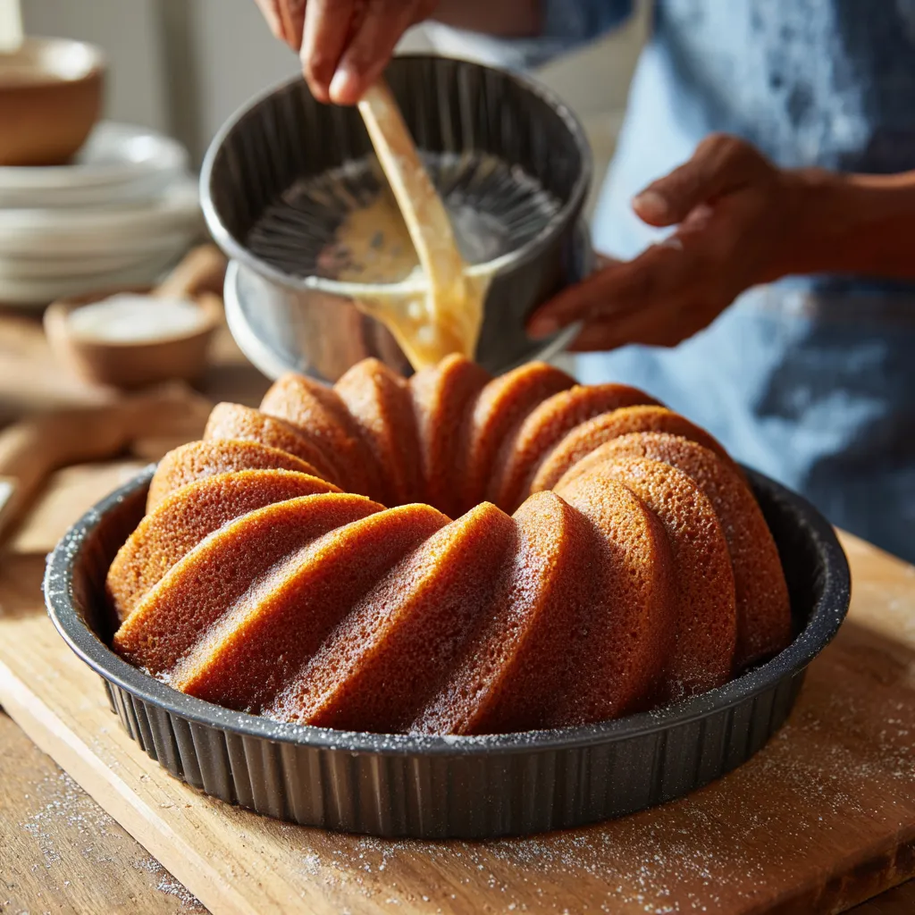 Preheat your oven to 350°F (175°C). Generously grease and flour your Bundt pan don’t skip this! The intricate design of Bundt pans loves to hold onto cake if you’re not careful.